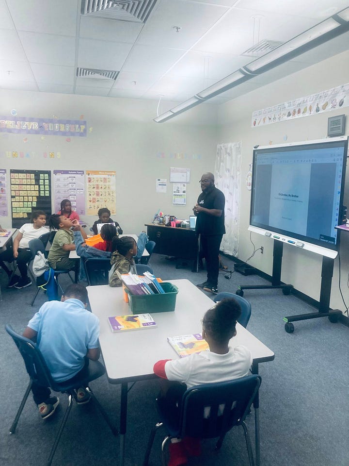 I was invited to read to Ms. Williams’ 3rd-grade class, which includes my nephew RJ. But what made this moment truly unforgettable was being able to share a preview of my upcoming children’s book, Oh Brother, My Brother. Reading my own story to a room of students in the same school I read in 15 years ago felt like life coming full circle.